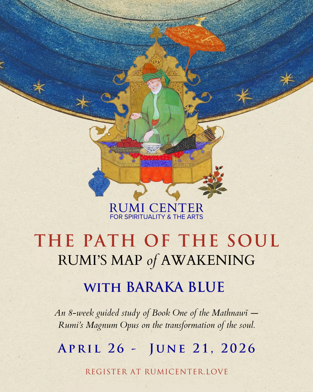 If you are drawn to the wisdom of Rumi and the path of love he describes, we invite you to join us for this exploration of Book One of the Mathnawi.